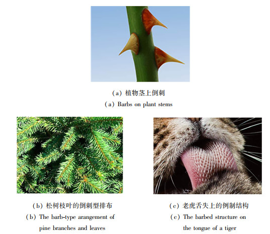 摘要: 受到一些植物茎部和部分猫科动物舌头上的倒刺结构在不同方向上表现出差异性的启发,该研究设计了一种可重复使用且易恢复的倒刺型超材料,并对其力学性能进行了理论分析和数值分析. 研究结果表明,在倒刺的往复运动中,当选取矩形截面高×宽为1 mm×1 mm,长为20 mm,且与竖直方向呈60°角的倒刺时,与阻挡凸台正向接触过程中的最大反力约为逆向接触过程中最大反力的20倍左右,而所消耗能量则相差约200倍. 当倒刺与竖直方向的角度减小时,倒刺结构吸收能量更多,恢复所需能量更少;当倒刺长度增大时,倒刺结构吸收能量减小,恢复时所需能量也减小. 这表明该结构具有出色的抗冲击性能和能量吸收能力,正逆向所需能量差异较大,结构更容易恢复,并且可以通过对倒刺角度和长度设计提升吸能效率.Abstract: Inspired by the differences in the barbed structures of some plant stems and cat tongues in different directions, a reusable and easy-to-recover barbed metamaterial was designed, with its mechanical properties analyzed theoretically and numerically. The results show that, in the reciprocating motion of the barbs, when the barb rectangular section sizes are 1 mm × 1 mm, the length is 20 mm, and the angle with the vertical direction is 60°, the maximum reaction force in the forward contact process with the blocking rib will be about 20 times of the maximum reaction force in the reverse contact process, and the former energy consumption is about 200 times of the latter. With the decrease of the angle between the barb and the vertical direction, the barb structure will exhibit a higher energy absorption capacity and a reduced energy requirement for recovery. Similarly, with the increase of the barb length, the structure energy absorption will be lower and the energy required for recovery will reduce. These characteristics indicate that, the structure possesses excellent impact resistance and energy absorption capacity. Structures with significant energy disparities between forward and backward motions are more easily recoverable, and the energy absorption efficiency can be enhanced by carefully designing the angles and lengths of the barbs.